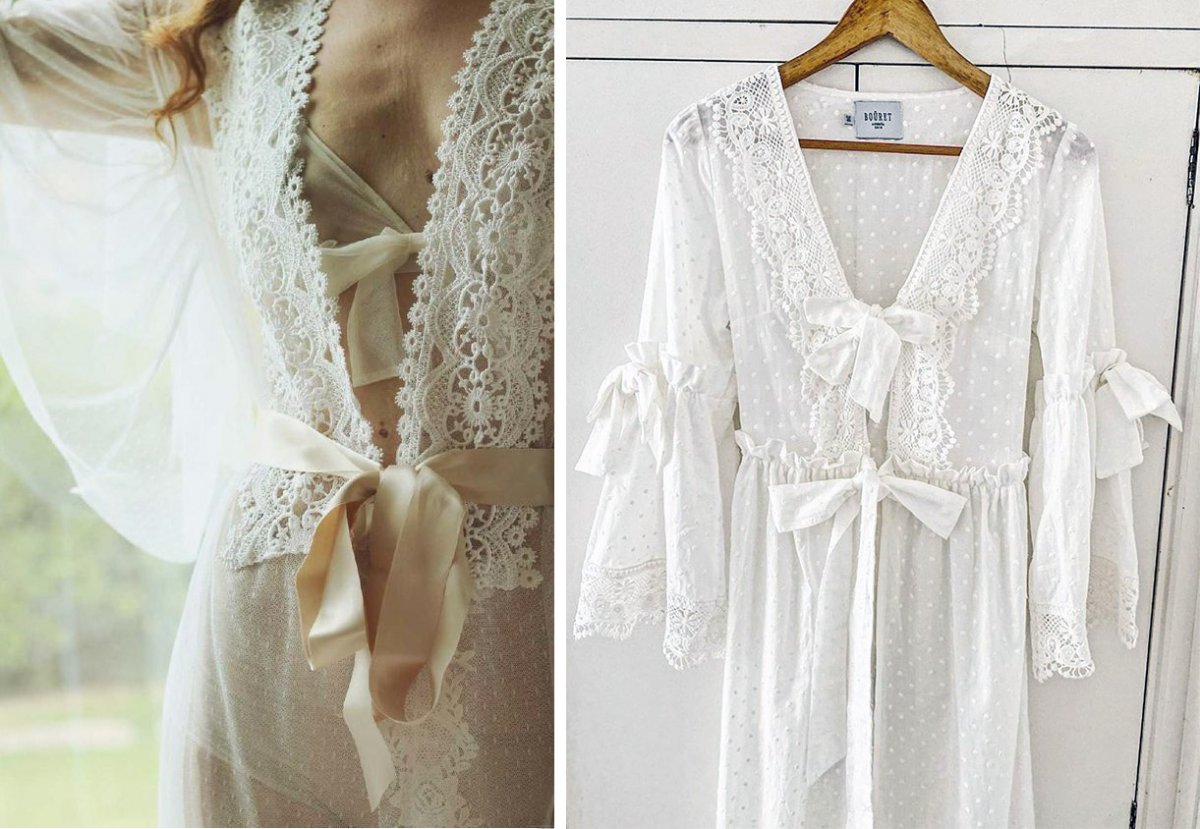 Regalar una preciosa bata para el momento en el que maquillan a la novia es un éxito asegurado. Generalmente, ni las novias ni sus familias caen en que en este momento de preparativos pueden salir fotos muy hermosas.